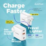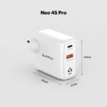 Introducing the Neo 45 Pro, a compact and powerful dual port fast charger with PD and PPS outputs for super-fast charging of a wide range of devices. Enjoy 45W PD and PPS output with the Type-C port, and 18W quick charge with the USB A port. Safety is a top priority with four layers of intelligent protection. The charger supports various fast charging protocols and is designed for global voltage inputs, making it perfect for travel. Charge two devices simultaneously with a total output of 5V/5A (Max 25W), and enjoy versatile output options for both ports. Upgrade to the Neo 45 Pro – your ultimate solution for efficient charging.