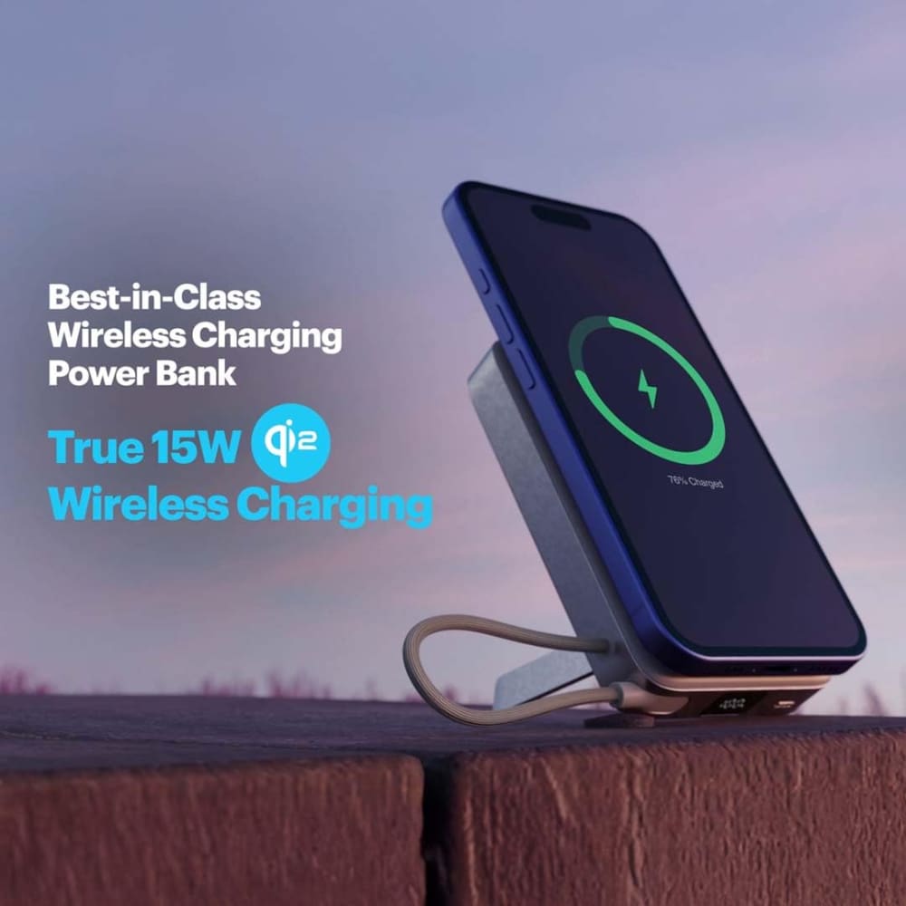 Stuffcool Odin 10000mAh Qi2 MagSafe Powerbank with 15W Wireless Charging, 35W PD Wired Output, Built-in Type-C Cable, Stand, Digital Display, for iPhone, Pixel, Samsung, AirPods