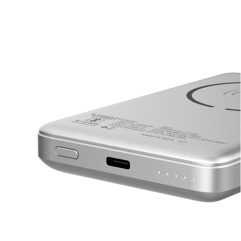 Stuffcool Alum 10000mAh Made in India Aluminium Metallic Magnetic Wireless Powerbank for iPhone 12/13/14/15 Series (Silver)